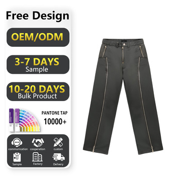 Aiqi กางเกงยีนส์ฟอกซีดของผู้ชาย, กางเกงยีนส์ขาบานสไตล์คาวบอยย้อนยุคทรงหลวมมีซิปสไตล์ฮิปฮอปกลางไฮสตรีท